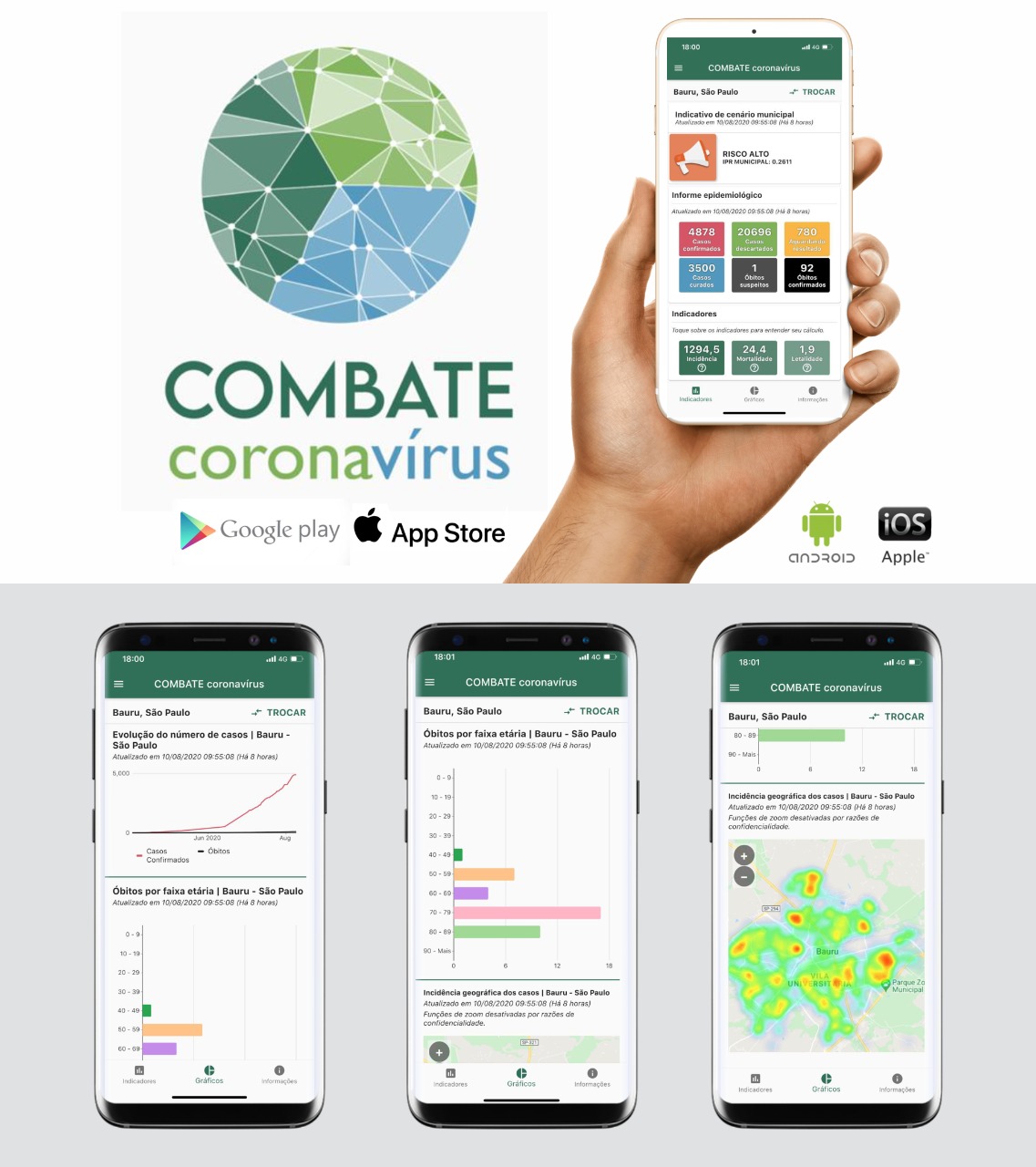 A plataforma Rede Combate Coronavírus foi desenvolvida por voluntários e possibilita acompanhar pelo celular dados e gráficos epidemiológicos, além de disponibilizar outras informações úteis para a população. O aplicativo também permite visualizar a localização dos casos confirmados da doença por meio de um mapa de calor "heatmap".