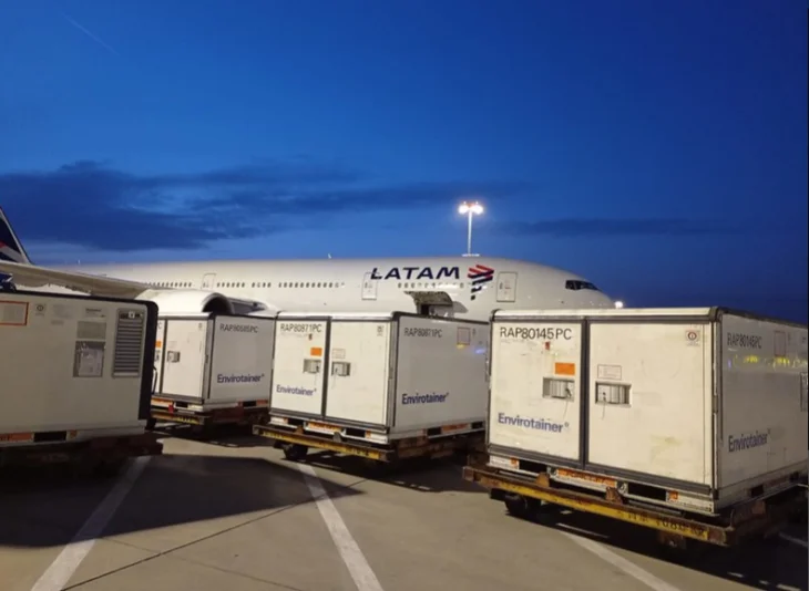 Esse é o primeiro lote de insumos que o Butantan recebe neste ano. A carga desembarca no aeroporto internacional de Viracopos, em Campinas, e será suficiente para cerca de 8,6 milhões de doses que serão envasadas, embaladas e rotuladas na capital.