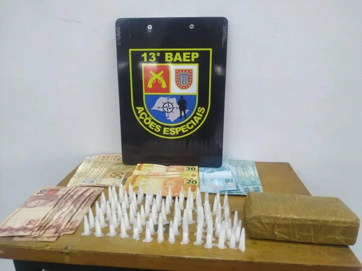Ao averiguar a denúncia, o BAEP chegou até a casa de um senhor, que autorizou a entrada dos oficiais. No local, foram encontrados 94 eppendorfs – conhecidos popularmente como pinos – de cocaína, além de um tijolo de maconha e R$ 1.900,00 em espécie. Um outro morador da residência assumiu a propriedade dos entorpecentes e recebeu voz de prisão. Ele foi encaminhado à Central de Polícia Judiciária (CPJ) de Bauru e responderá por tráfico de drogas.
