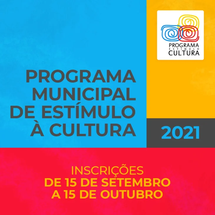 A Secretaria de Cultura abre, nesta quarta-feira (15), as inscrições para a apresentação de projetos ao edital de 2021 do Programa Municipal de Estímulo à Cultura. Os interessados devem entregar suas propostas pessoalmente até o dia 15 de outubro na Secretaria de Cultura, que atende de segunda a sexta-feira, das 8h às 12h e das 13h às 17h.