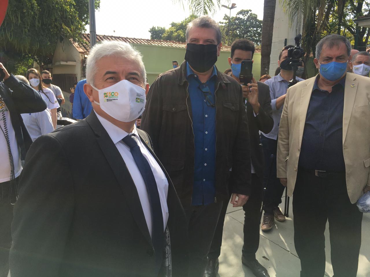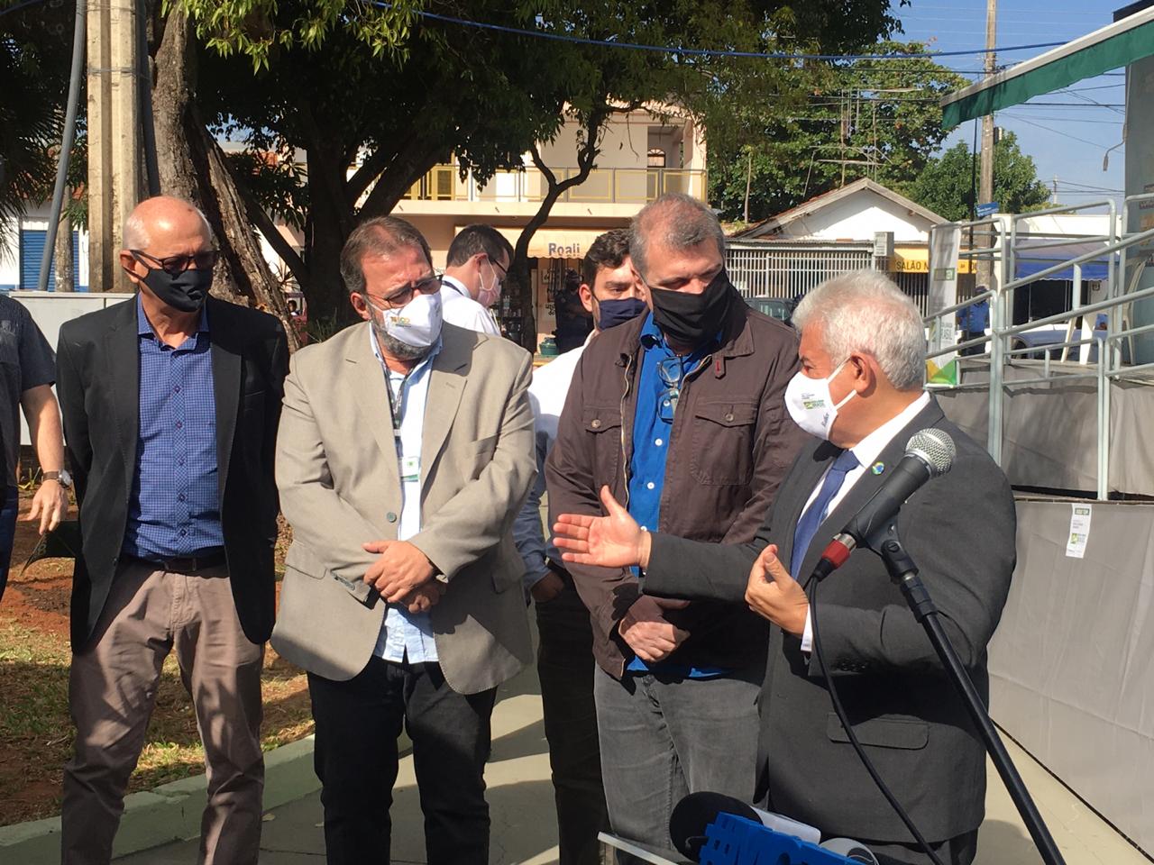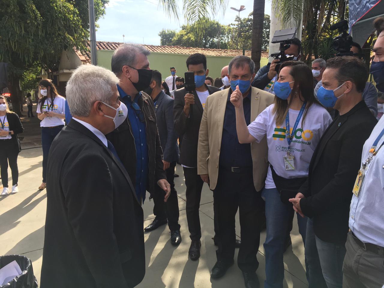 O prefeito Clodoaldo Armando Gazzetta e o Secretário de Saúde Sérgio Henrique Antônio receberam, nesta segunda-feira (06), o Ministro da Ciência, Tecnologia e Inovações (MCTI), Marcos Pontes, para lançamento da ação #500VoluntáriosJÁ, em Bauru. O projeto objetiva a participação de 500 voluntários com sintomas de Covid-19 em estudo clínico de análise da eficácia do medicamento Nitazoxanida contra a doença.