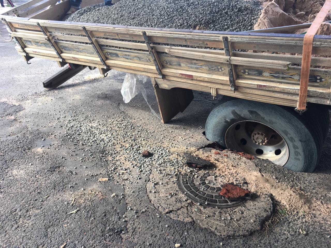 Na manhã desta terça-feira (20), um caminhão ficou preso após o asfalto ceder próximo a um posto de inspeção do Departamento de Água e Esgoto (DAE) no Jardim Colonial. O acidente não deixou vítimas, mas foi necessário a ajuda de uma máquina retroescavadeira para retirar o veículo do local.