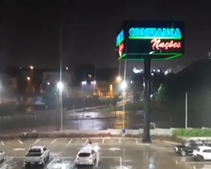 Local já conhecido por gerar problemas durante as chuvas, a Avenida Nações Unidas registrou alagamentos em diversos trechos, como é o exemplo da quadra 17, em frente ao Supermercado Confiança Nações.