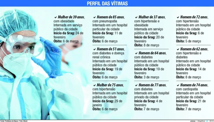 Nesta segunda-feira (08), foram registradas dez novas vítimas fatais pela Covid-19, somando um total de 442 mortes no município por conta da doença desde o início da pandemia. Os dados são da Prefeitura de Bauru, por meio do Departamento de Saúde Coletiva, e apontam que um recorde diário de letalidade foi registrado nesta segunda.
