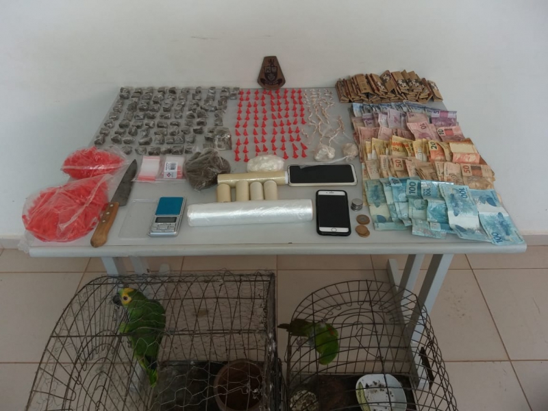 Os criminosos, jovens de 20 e 23 anos, portavam entorpecentes como crack, maconha e cocaína, além de materiais que serviriam para embalar as drogas. Também foram encontrados uma moto furtada, celulares e R$3.893,00 em dinheiro vivo.