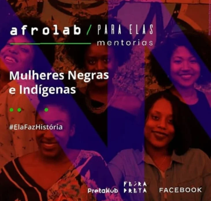 Criado para apoiar negócios de mulheres pretas e indígenas do Brasil, o projeto "Afrolab para Elas - Mentorias" foi desenvolvido com metodologia exclusiva da @FeiraPretaOficial e do Facebook. O programa tem duração de quatro meses, é gratuito, online e conta com aulas que ensinam a impulsionar o negócio, com aulas de gestão de negócios, empreendedorismo e economia; além de oferecer suporte psicológico com a especialista em Saúde Mental da Universidade Federal do Rio de Janeiro (UFRJ), Beatriz Moura – voltado para o auto-conhecimento, criatividade e inventividade.