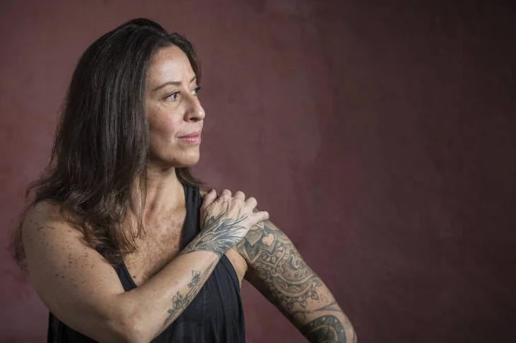 Foi só publicar em suas redes sociais a foto com o esparadrapo no braço, indicando que havia tomado a vacina contra a Covid-19, que a atriz Aline Abovsky, 48 anos, começou a receber mensagens com perguntas como "qual mutreta você fez para poder tomar a vacina", "o que você tem para poder tomar vacina?".