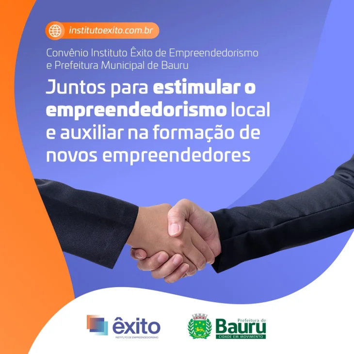 O Instituto Êxito de Empreendedorismo firmou convênio com a Prefeitura Municipal de Bauru, por meio da Secretaria de Desenvolvimento Econômico, Turismo e Renda (SEDECON), com o objetivo de auxiliar na formação de novos empreendedores locais, bem como apoiar o aperfeiçoamento daqueles que já possuem seu próprio negócio. As capacitações serão oferecidas através da plataforma online do Instituto, que possui mais de 300 cursos gratuitos. O acordo foi publicado em 30 de julho de 2020, no Diário Oficial da cidade.