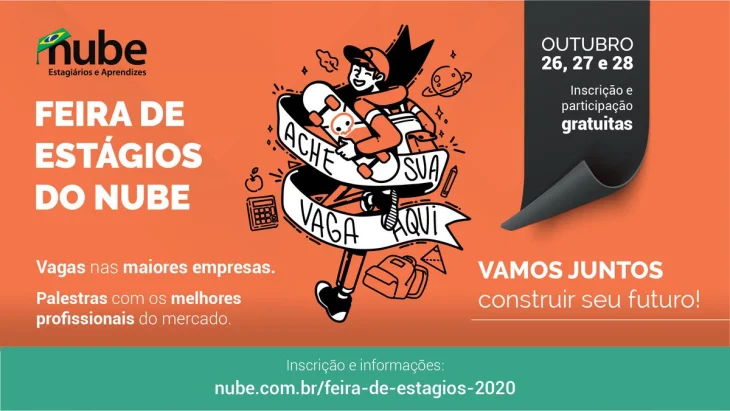 Para ter acesso aos painéis e vagas, é necessário fazer o cadastro gratuito no site do Nube e se inscrever por meio do link: www.nube.com.br/feira-de-estagios-2020.