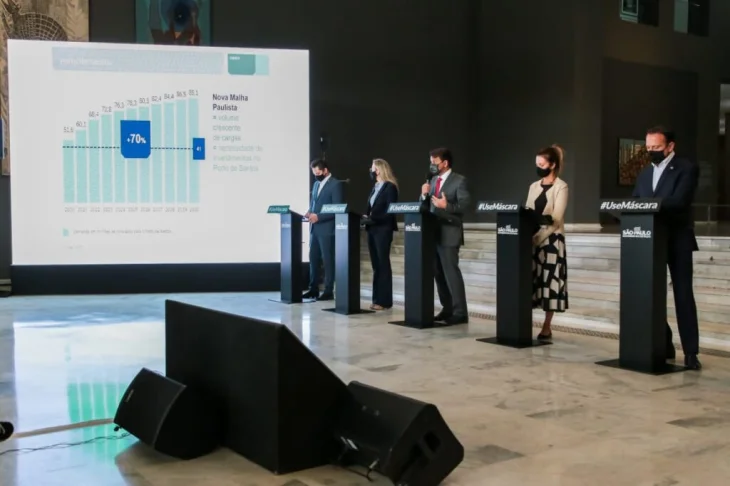 Também hoje na sede do Governo paulista, o Governador anunciou investimentos de R$ 6 bilhões na reestruturação da malha ferroviária no estado. O anúncio faz parte do programa Retomada 21/22, plano para impulsionar a economia. É a maior ampliação da malha ferroviária no estado em cinquenta anos.