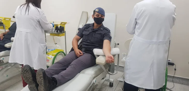 Os policiais se apresentaram no hemocentro e realizaram suas doações mediante agendamento e seguindo as normas de segurança para prevenção ao coronavírus.