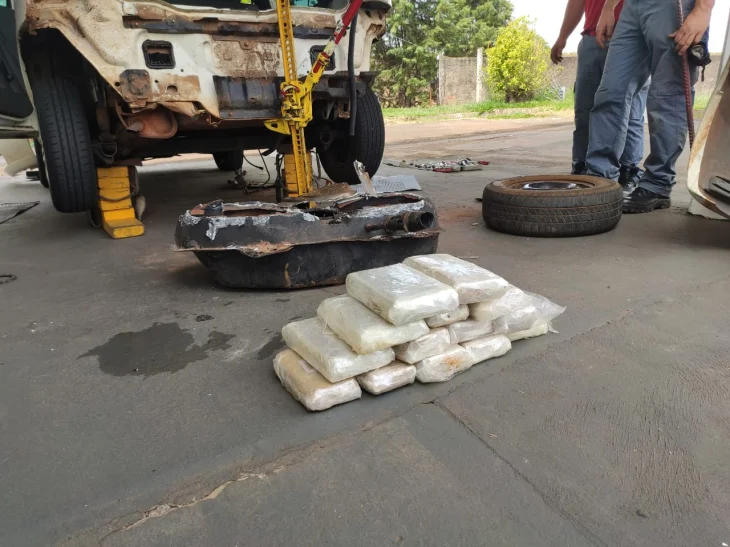 Uma equipe do Corpo de Bombeiros foi acionada e ajudou os militares a retirarem o tanque de combustível do carro. Dentro dele foram encontrados os entorpecentes.