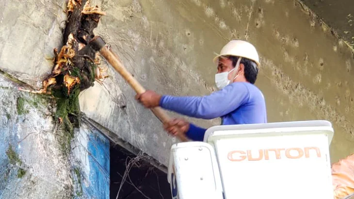 O primeiro viaduto a receber a manutenção é o João Simonetti, na Rua Treze de Maio. Nesta quarta-feira, 7, a equipe realizou a retirada de árvores que estavam crescendo na estrutura.
