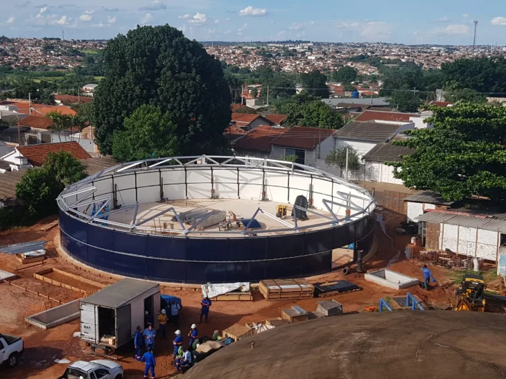 O reservatório de alta tecnologia, feito com chapas de aço vitrificadas e importadas dos Estados Unidos, terá capacidade para armazenar 3 milhões e 500 mil litros de água. A empresa vencedora da licitação, Tanks BR, iniciou nesta semana a fase de montagem do teto da unidade.