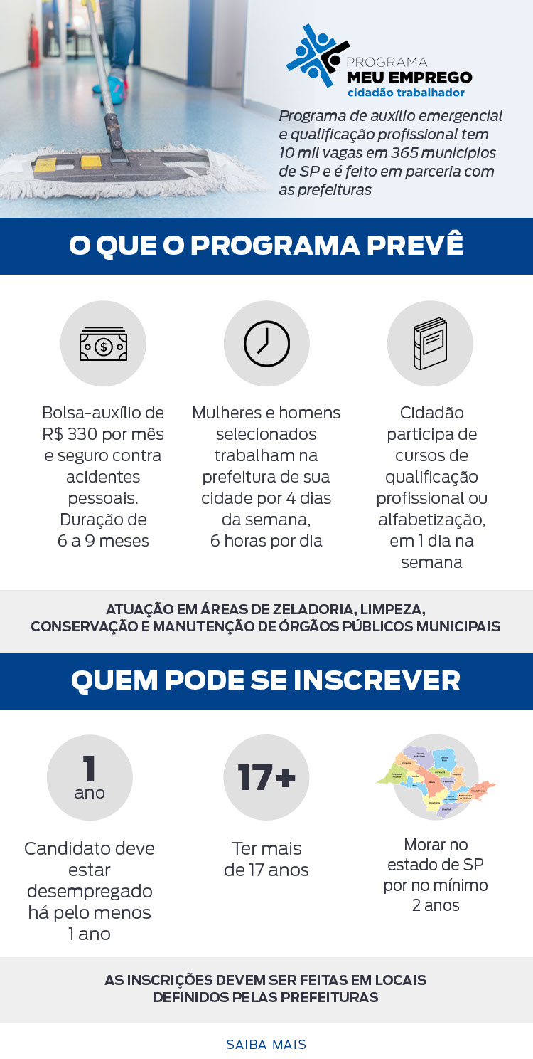 São 10 mil bolsas de auxílio-desemprego no valor de R$ 330 em 365 municípios de SP