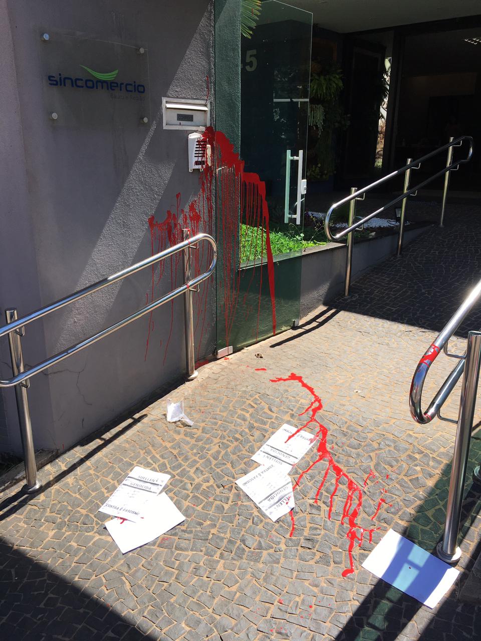 Nesta sexta-feira (19), o Sindicato do Comércio Varejista de Bauru e Região (Sincomércio) amanheceu vandalizado. A sede, que fica localizada na quadra 17 da Avenida Nações Unidas, foi pichada com tinta vermelha e cartazes com os dizeres “Suellen Genocida” em protesto contra as tentativas do órgão de reabrir o comércio.
