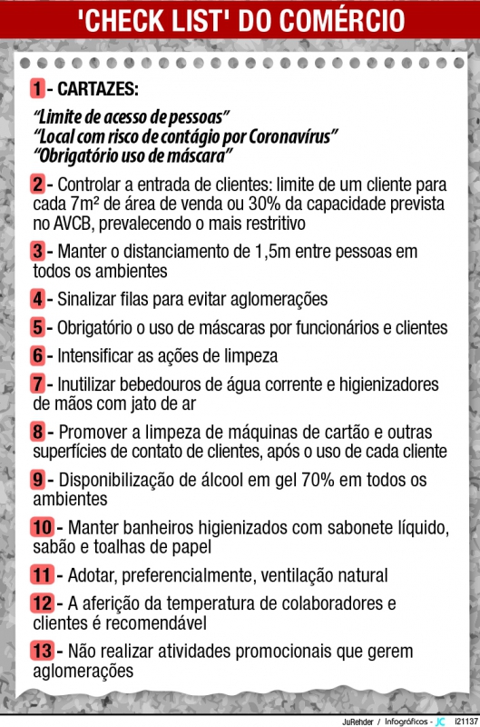 Sampaio também afirma que, durante o Reage São Paulo, os comerciantes que optarem pela reabertura devem adotar uma postura de diálogo e não de embate. Caso os estabelecimentos venham a ser multado, o sindicato vai oferecer assistência jurídica gratuita aos empresários. O Sincomércio também disponibiliza um "checklist" do comércio, no qual constam medidas sanitárias de segurança que devem ser cumpridas pelos comerciantes.