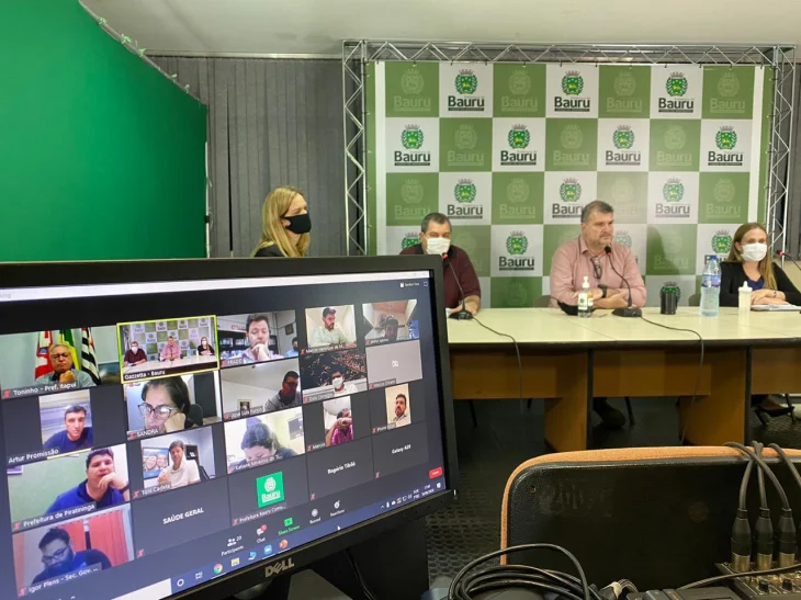 O Prefeito Clodoaldo Gazzetta e as secretárias de Desenvolvimento Econômico, Aline Fogolin e de Planejamento, Letícia Kirchner e o diretor regional da Secretaria de Desenho Regional José Eduardo Amantini participaram, na noite desta quarta-feira (10), de reunião online com prefeitos que fazem parte do Pacto Regional.