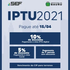 Economia 13/04/2021 Pagamento à vista e da primeira parcela do IPTU vai até quinta-feira (15) em Bauru
